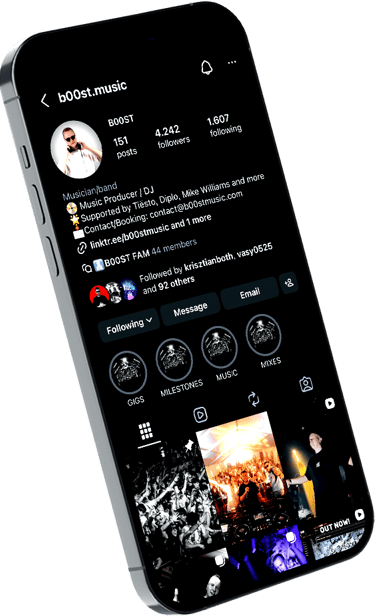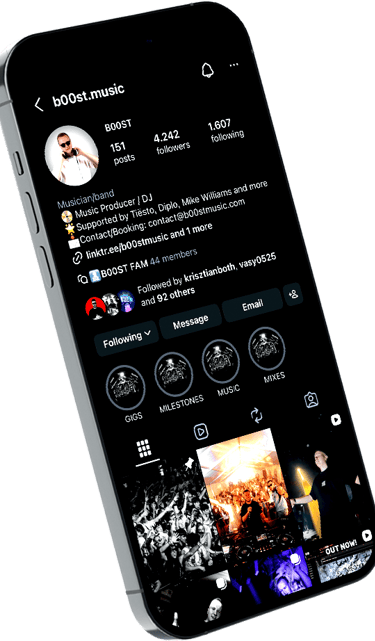 As a DJ, B00ST has performed at major festivals and club events, sharing stages with well-known artists and delivering energetic, crowd-driven sets. His music is available on all major streaming platforms, including Spotify, Apple Music, YouTube, SoundCloud, and Deezer.
